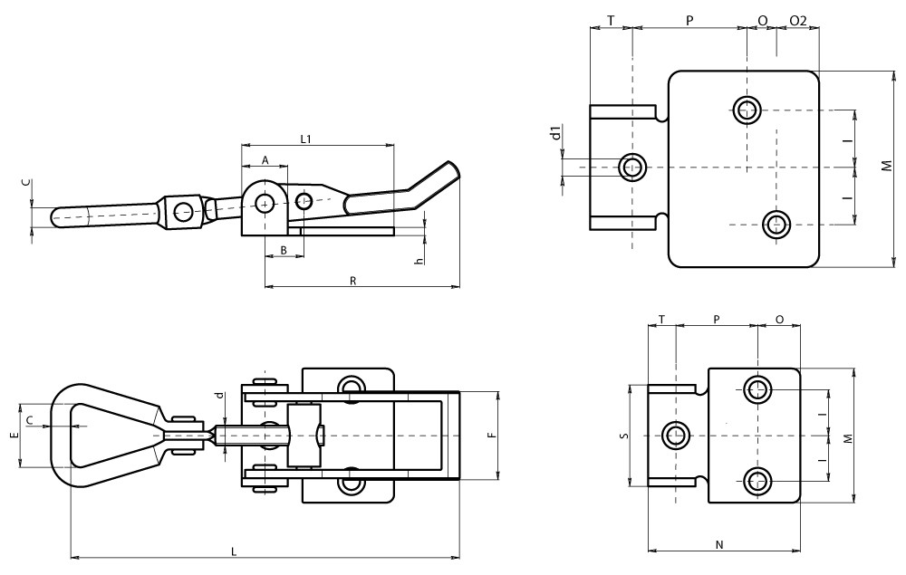| Code No | R | L | L1/N | A | B | C | d | d1 | E | F | h | l | M | O | O2 | P | T | S |
